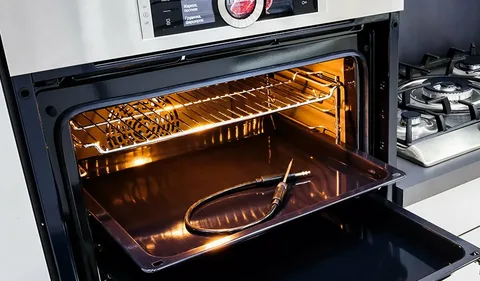 - Чистота: Сильные загрязнения (особенно жир и нагар на дне, вокруг нагревательных элементов или на датчике температуры) могут вызывать дым, запах, искры и даже влиять на работу датчиков или вызывать короткие замыкания. Тщательно очистите духовку (в том числе съемные элементы: решетки, противни, поддон), уделяя внимание области вокруг ТЭНов. Не используйте абразивы на нагревательных элементах.