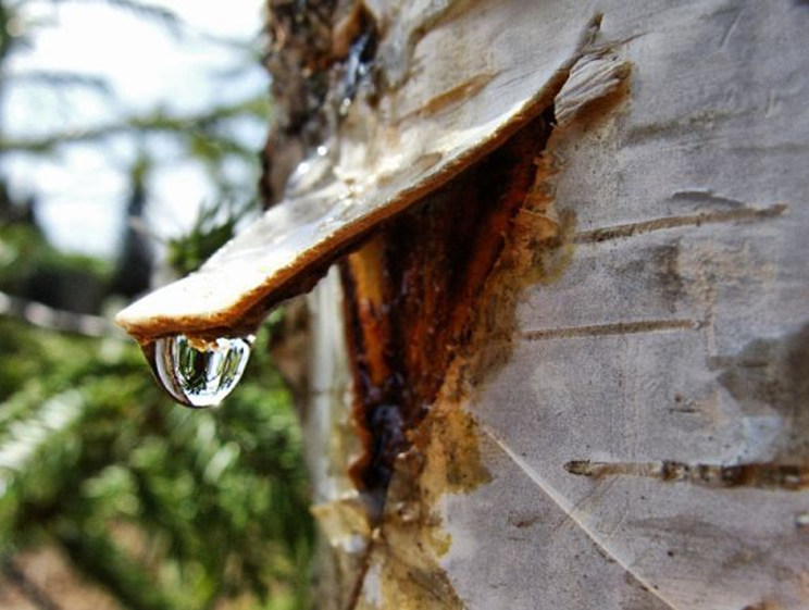 Отец поставил канистры, достал нож и взрезал латинской буквой V кору ближайшей огромной берёзы. Оттуда сразу потёк сок. Я впервые увидел, как добывается березовый сок.