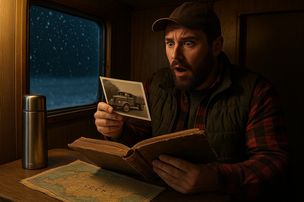 Сначала я думал — архивное фото просто, ну ракурс, может быть, просто похож чем-то. Но чем дольше смотрел — тем сильнее сползало всё внутри. Шрам — один в один. Куртка — его, только он сам её купил в 1993-м. Грузовик — тот самый, только номера другие. А подпись под фото: «Автодорога К-26, зимник. Январь, 1961». Он родился в шесть лет спустя. И только одна дорога ему всегда казалась странной. Та, которая вела в никуда. А может, обратно.