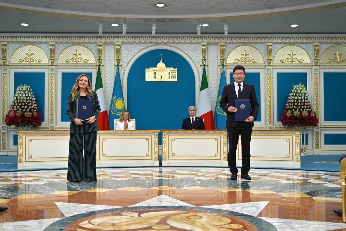 Казахстан и Италия подписали ряд важных документов По итогам переговоров Касым-Жомарт Токаев и Джорджа Мелони приняли совместное заявление о расширении стратегического партнерства. Как сообщили в Акорде члены официальных делегаций обменялись следующими документами: 📶Соглашение о реадмиссии лиц; 📶Совместное заявление о сотрудничестве в области критических полезных ископаемых и критических сырьевых материалов; 📶 Меморандум о сотрудничестве между АО «Самрук-Казына» и Maire Tecnimont; 📶Соглашение о сотрудничестве между АО «Самрук-Казына» и Ansaldo; 📶Меморандум о реализации программы сотрудничества по продвижению практических решений, связанных с водными вызовами; 📶 Совместная декларация между Банком развития Казахстана, Cassa Depositi e Prestiti S.p.A. и SACE SpA; 📶Меморандум о взаимопонимании между АО «Самрук-Энерго» и SACE SpA; 📶 Меморандум о сотрудничестве между АО «НК «Kazakh Invest» и Italian Trade Agency. Фото: Акорда ✍️Подписывайтесь на https://dzen.ru/id/65c879adfcd09
