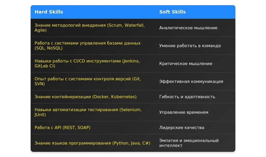 Анализ требований вакансии для профессии "инженер по внедрению ПО"