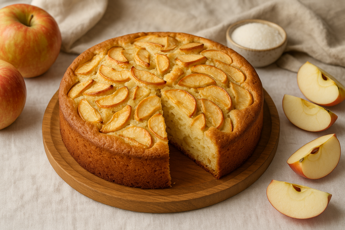 Ингредиенты: Приготовление: 1. Взбей яйца с сахаром и ванильным сахаром до пышной массы. 2. Постепенно добавляй просеянную муку с разрыхлителем и щепоткой соли, аккуратно перемешивая. 3. Яблоки нарежь ломтиками и добавь в тесто. 4. Вылей тесто в форму, смазанную маслом, и выпекай в разогретой до 180°C духовке около 40-45 минут. Приятного аппетита!