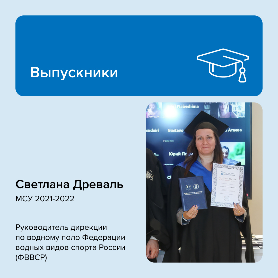 Одна из нас — теперь во главе российского водного поло. Светлана Древаль, выпускница 2022 года, назначена руководителем дирекции по водному поло Федерации водных видов спорта России. Бронзовый призер Олимпийских игр в Сиднее, заслуженный мастер спорта, опытный специалист — теперь Светлана координирует развитие водного поло на федеральном уровне. Ранее она работала в Департаменте спорта Москвы, занималась подготовкой сборных команд. Успехи наших выпускников — лучший показатель того, что знания работают. Поздравляем Светлану с новым этапом и желаем мощного старта в должности. #рмоу #riou #рмоусочи #рмоу_выпускники #спорт #менеджмент #образование #олимпийскийуниверситет #сочи