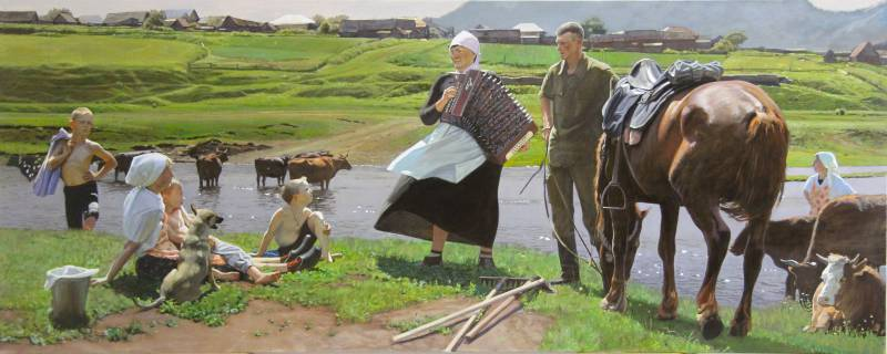 Андрей Геннадьевич Подшивалов. Русская пастораль 2020г. Почему женщина с гармонью,знаете? Истоочник: http://www.andrey-podshivalov.ru/index.php Роджер Файзиев" Heiress of the steppes" 100х100 , холст масло. А сабля ей зачем? Источник: персональный сайт художника Роджера Файзиева Станислав Плутенко / Интерьеры / Фреска гостевой комнаты «Таскания». 2008 В лучших традициях старых мастеров. Источник: Официальный сайт художника Станислава Плутенк Наталья Васенкова. " Летний пейзаж с аистами" холст на подрамнике 45*60 , масло Источник: Наталья Васенкова Елена Лютчер. "Деревенский натюрморт". Льняной холст на подрамнике 35*50, масло. Алёна Дергилёва (акварель, 2018) Очень люблю ее картины. Источник: сайт художника АЛЁНЫ ДЕРГИЛЁВОЙ Константина Куземы. Никольский собор