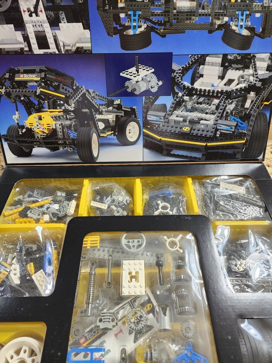 Сейчас коробку отдельно можно приобрести в приличном состоянии по цене от 50 долларов, что составляет четверть стоимости самого набора на вторичном рынке. Однозначно стоит посмотреть, за что же нам так гнут ценник. Итак, на первый взгляд у нас обычная коробка Technic из 90х, сейчас такой стиль выглядит уж очень простым, но времена тогда были совсем другие. Стандартная для тех лет шторка сверху прячет под собой дополнительные фото набора и прозрачное окно показывающее содержимое коробки.