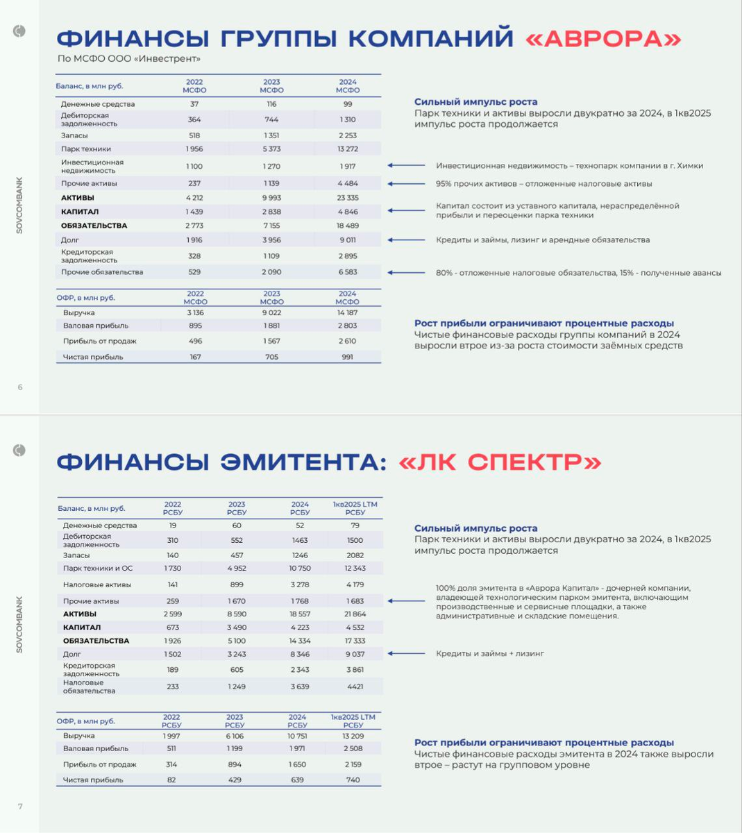 🍾 Ну привет, пятница-развратница! Заждались мы тебя и готовы практически полностью насладиться... после свежих выпусков облигаций, разумеется! ⬇️ Начало торгов нынче у пяти бумаг: 〰️〰️〰️〰️〰️ 🟩 СОВКОМБАНК ЛИЗИНГ БО-П10 📊 🅰️🅰️➖ 🔹 $RU000A10BPV0 ▪️ Купон плавающий: ΣКС + 2% ⚠️ PUT: через 6 месяцев ⚠️ АМОРТИЗАЦИЯ: с 13 купона по 2,08% ежемесячно ▪️ 5 лет до погашения ➤ Клубный выпуск. Сбор был без широких масс, вероятность появления в стакане очень невысока. Но если вдруг - удобный и короткий флоатер. 〰️〰️〰️〰️〰️ 🟩 АФК СИСТЕМА 002Р-02 📊 🅰️🅰️➖ 🔹 $RU000A10BPZ1 ▪️ Купон фиксированный: 22,75% ✅ Без оферт ▪️ 2 года до погашения ➤ Та самая долговая барыня. Не люблю по высоким рейтингам смотреть финансовые показатели, но тут не удержался. МСФО за 2024 год: ⬆️ Выручка: 1,2 трлн. (1,04 трлн.) 🙂↔️ Чистая прибыль убыток: 11 млрд. (13 млрд.) 🛑 Краткосрочные заемные средства: 768 млрд. (510 млрд.) 🛑 Долгосрочные заемные средства: 717 млрд. (688 млрд.) ➤ Как-то работает с этим, но я в таком