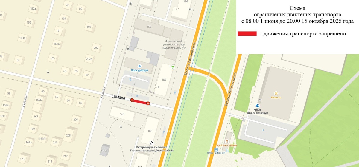 Движение транспорта прекратят, чтобы провести ремонтные работы на подземных инженерных коммуникациях тепловых сетей. Ограничения будут действовать с 8:00 часов 1 июня до 20:00 15 октября. Это коснется участка дороги от жилого дома № 182 на улице Богдана Хмельницкого до жилого дома № 163 на улице 9 Линия. Водители смогут объехать обозначенный участок по улицам Ипподромная, 8 Линия, 1905 года, Б. Хмельницкого. Фото: пресс-центр администрации города Омска