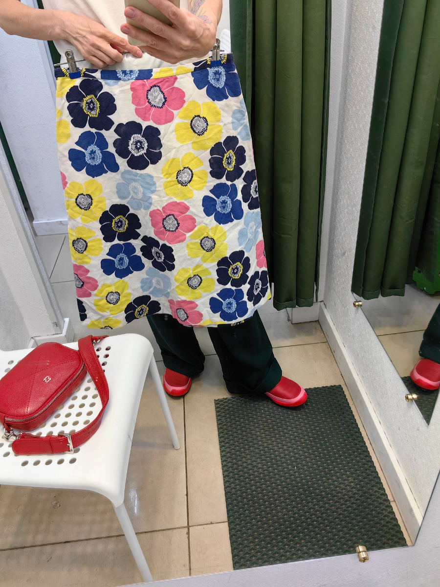 Летняя, яркая полульняная юбка от Лауры Эшли. Принт напомнил мне немного фирменный принт Маримекко. Красивая, понравилась.