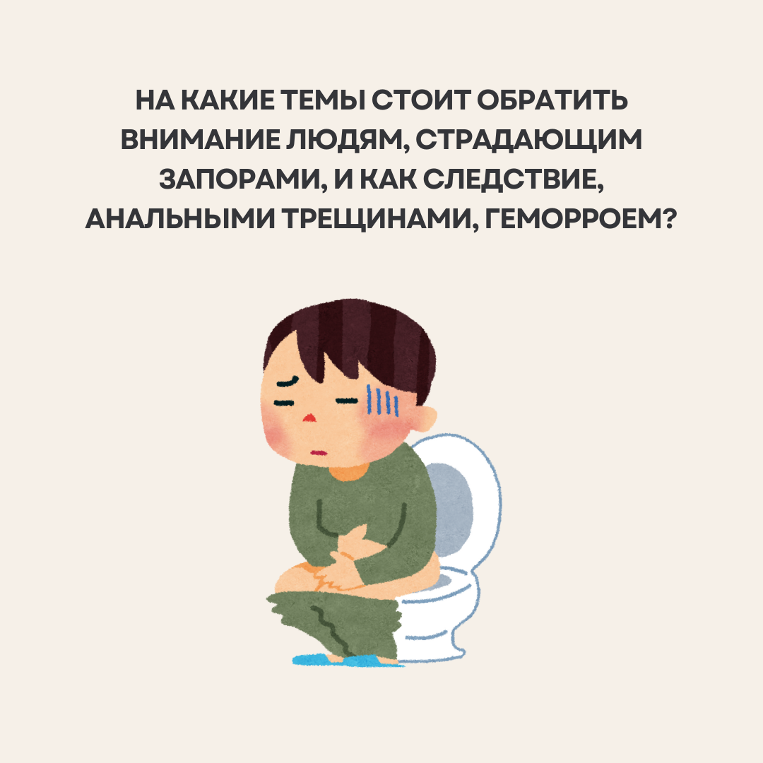 Сегодня я предлагаю познакомиться с причинами запоров и их следствием в виде ан. трещин и геморроя.