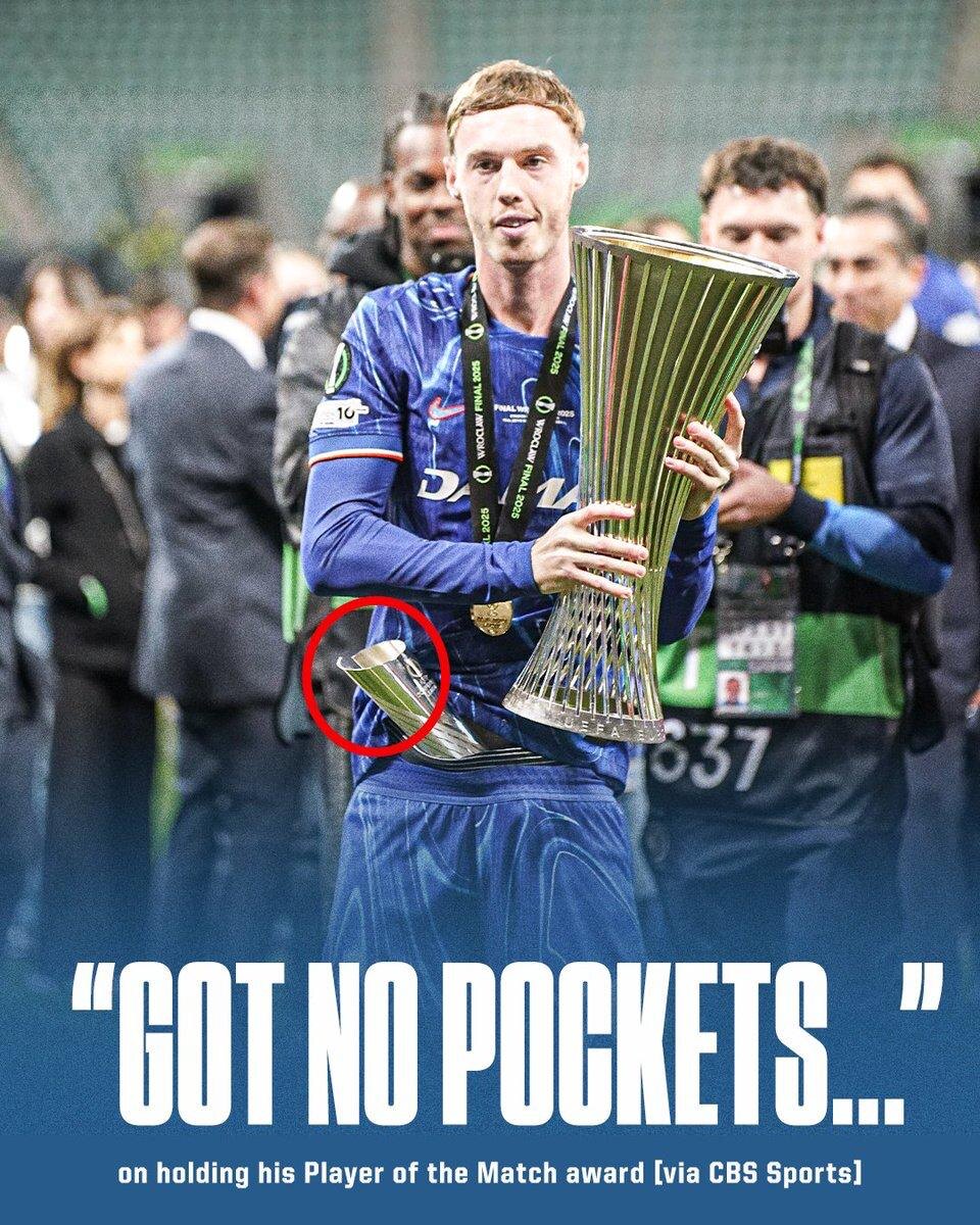 Коул Палмер объясняет, почему сунул награду лучшему игроку финала Лиги Конференций в труселя: "Прост не было карманов..." 🤷♂️