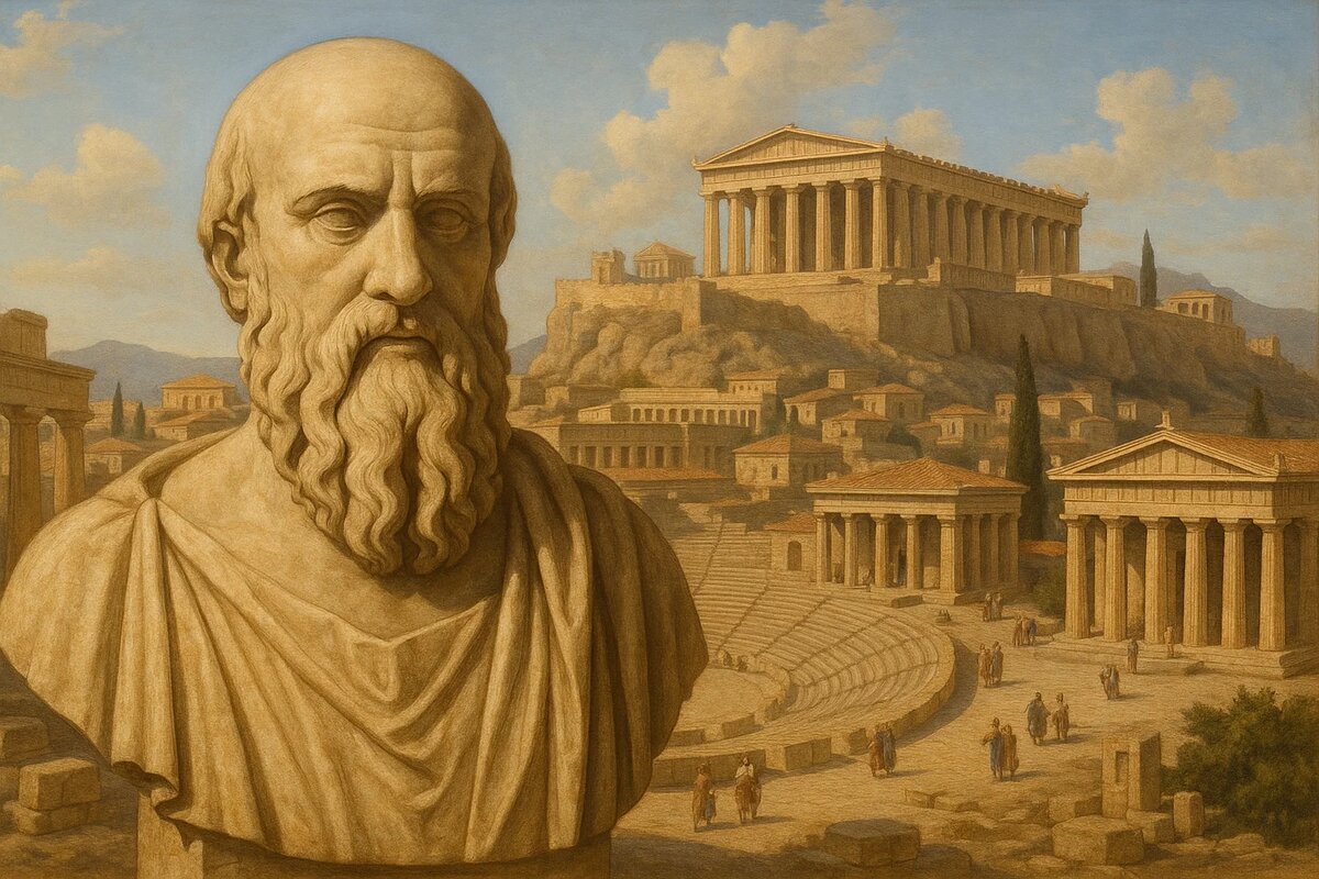 Эсхил — один из тех людей, о которых говорят как о создателе чего-то большого, хотя сам он, наверное, даже не думал, что станет таким важным. Жил он в Древней Греции, примерно в пятом веке до нашей эры. Это был период расцвета Афин, когда там строили храмы, писали законы и придумывали театр. И Эсхил стал одним из первых, кто сделал спектакли такими, какими мы их знаем сейчас. До него были какие-то ритуальные песни и танцы, а он добавил к этому актёров, диалоги и сюжет. Представь себе, будто раньше люди просто стояли и пели, а потом вдруг начали разыгрывать истории перед зрителями. Это и есть его заслуга. Он родился в семье знатного афинского рода, но детство у него было совсем не праздничным. В то время Грея жила под постоянной угрозой персидских войск. И Эсхил, как и все молодые мужчины, принимал участие в реальных сражениях. Он участвовал в битве при Марафоне, где греки одержали победу над персами. Потом была ещё Саламинская морская битва и Платеи. То есть парень видел войну своими