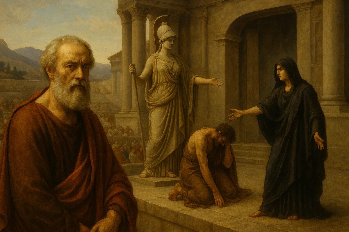 Софокл — один из великих трагиков Древней Греции, чьё имя стоит в одном ряду с Эсхилом и Еврипидом. Родился он примерно в 497 году до н.э. в небольшом афинском деме Колон. Его отец по имени Софилл был богатым оружейным мастером, что дало юному Софоклу хорошее образование и возможность заниматься искусством. В то время Афины были на подъёме — только-только вышли из персидских войн, укрепили демократию и начали активно развивать культуру. В такую среду и попал будущий драматург. Он рос в окружении искусства, музыки, философии и политики, что не могло не повлиять на его выбор жизненного пути. Первые успехи Софокла пришлись на 468 год до н.э., когда он победил самого Эсхила на театральных состязаниях. Это было громкое событие, потому что Эсхил считался тогда главным трагиком Афин. Но Софокл представил свою пьесу, и судьи признали его лучшим. С этого момента началась его карьера как драматурга. За свою жизнь он написал около 120 пьес, но до нас дошло всего семь. Среди них — «Царь Эдип», «А