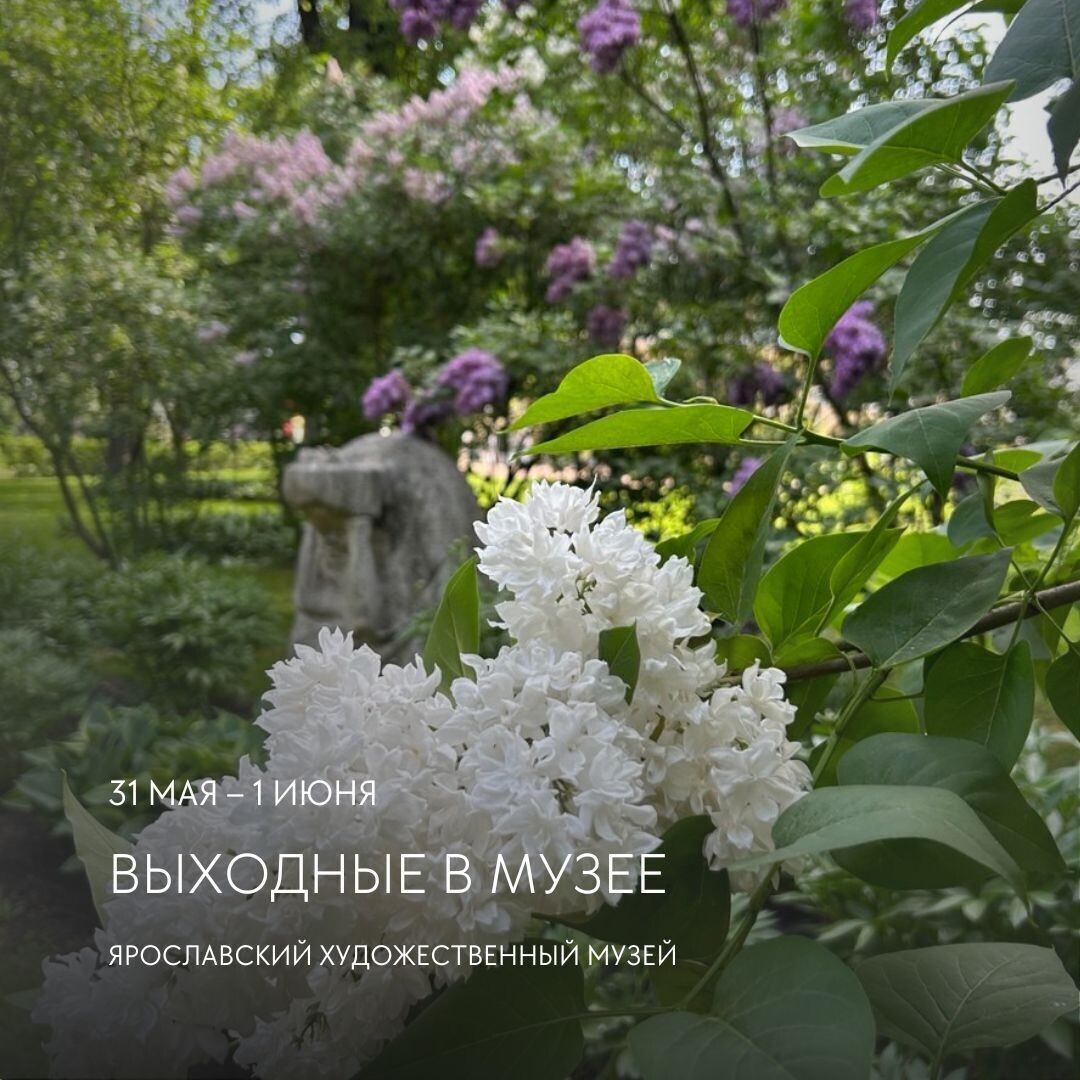 Выходные в #ЯХМ: ГУБЕРНАТОРСКИЙ ДОМ. Волжская набережная, 23 31 мая в 15:00 – Музейный синематограф. Показ фильма «Михайловский дворец» (2002). К 200-летию Михайловского дворца и 130-летию Русского музея МИТРОПОЛИЧЬИ ПАЛАТЫ. Волжская набережная, 1 30, 31 мая в 17:00 – показ мультимедийного проекта «Семьи небесные» 31 мая в 12.00, 13:00 – показ мультимедийного проекта «Семьи небесные». Сеанс для детей 31 мая в 15.00 – лекция сотрудника Музея им. Андрея Рублева Дионисия Денисова «Образы семьи в древнерусском искусстве» и просмотр видеопроизведения «Семьи небесные» 1 июня в 13:00 – сборная экскурсия по экспозиции «Древнерусское искусство XIII–XVII веков» ДОМ НА НОВИНСКОЙ. Тутаев, ул. Ленина, 59/8 31 мая в 15:00 – сборная экскурсия по экспозиции Романово-Борисоглебского городского общественного банка МУЗЕЙ ЗАРУБЕЖНОГО ИСКУССТВА. Советская площадь, 2 1 июня в 17:00 – сборная экскурсия по выставке «Французский музеум князя Н.Б. Юсупова» из собрания музея-заповедника «Архангельское»