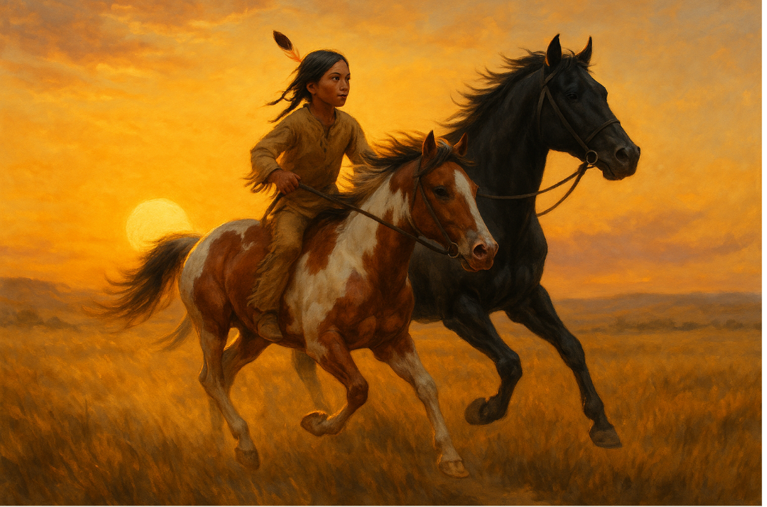 Я скачу по прериям, на рассвет, рядом со своим другом, Оленьим Хвостом и другими индейцами...