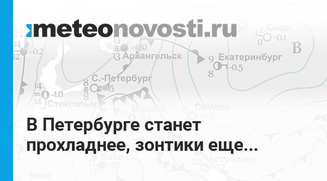 Дожди на этой неделе были частыми, в начале обильными. В сумме выпало 27 мм осадков, а это более половины месячной нормы. Но на День города (27 мая) погода сделала приятный сюрприз – днем обошлось без осадков и потеплело до +20. В четверг хотя и покапало немного, но в теплом секторе циклона стало еще теплее, воздух прогрелся до +25. Северо-запад России остается под влиянием циклонов. В пятницу днем в Северной столице местами пройдут кратковременные дожди, местами возможны ливни с грозами, при грозе – порывистый ветер. В субботу кратковременный дождь так же не исключается, а вот воскресенье пройдет без существенных осадков. По сравнению с прошедшими днями в выходные станет существенно прохладнее: температура воздуха ночью +9..+12 градусов, днем +16..+19. Перейти на сайт Прогноз погоды на 14 дней