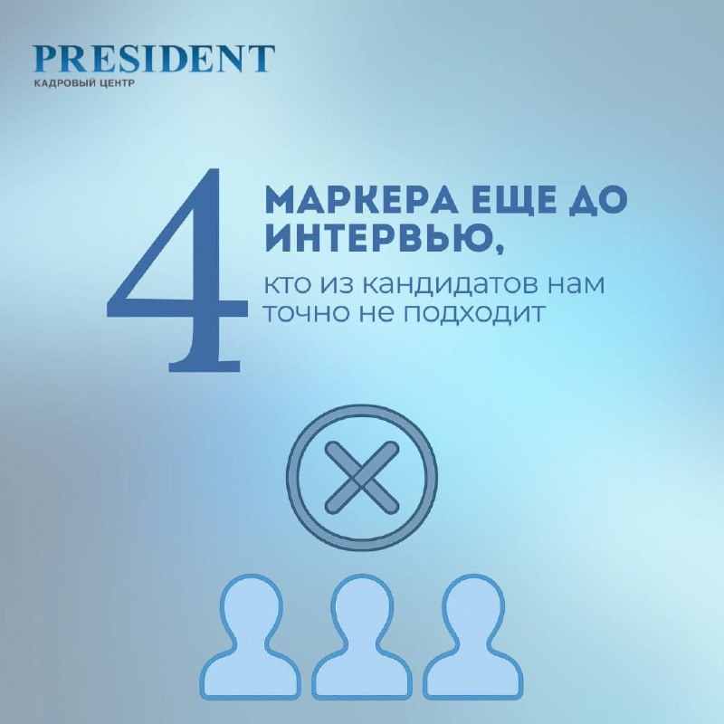 Подборка: Кто нам точно не подойдёт — ещё до интервью Некоторых кандидатов мы отсеиваем сразу — не потому что они плохие, а потому что не подойдут именно этому работодателю. 📌Мы несем ответственность за то, чтобы вы тратили время только на релевантных финалистов. #кадровыйцентрPRESIDENT #подборперсонала #рекрутинг #работодатель #HRсоветы #найм #подборкадров #оценкакандидатов