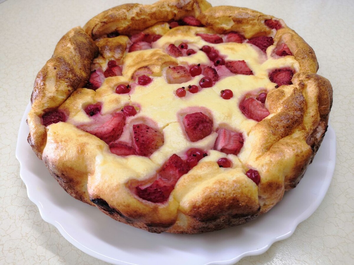 Очень люблю готовить эту запеканку, ягоды можно добавлять любые КБЖУ на 100 гр (без ягод): 134.7/13.2/6.1/6.9 Ингредиенты: 1. Сначала нужно отделить белки от желтков у яиц. Белки оставляем. Желтки добавляем к творогу, туда же кукурузный крахмал, подсластитель, молоко. И пробиваем все это блендером до однородной массы 2. Затем нужно взбить белки миксером до крепкой пены . Добавить взбитые белки в творожную массу и аккуратно перемешать лопаткой. 3. У меня форма 22 см. Я выложила в нее силиконизированную бумагу для выпечки, с ней запеканка легко отходит после того как остынет. Сверху положила ягоды. У меня замороженная клубника и красная смородина - я их чуть разморозила и слила жидкость. 4. Запекать 35-45 мин при 180 гр (смотрите по своей духовке). Остудить и потом доставать. Запеканка осядет, так и должно быть. Она вкусная и в теплом виде и в холодном.