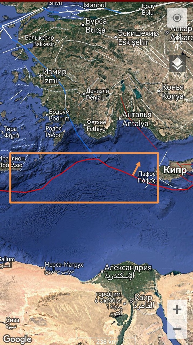 Трассируется зона между Додеканес и Кипром. Протяжённость ОСТИ тянет на событие с магнитудой до М6.3 ==== The zone between the Dodecanese and Cyprus is being traced. The length of the CSTI pulls for an event with a magnitude up to M6.3