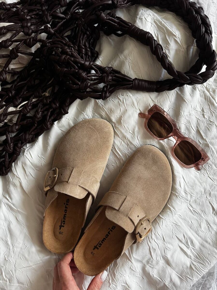 Одна из последних удачных покупок – вот эти замшевые сабо Tamaris