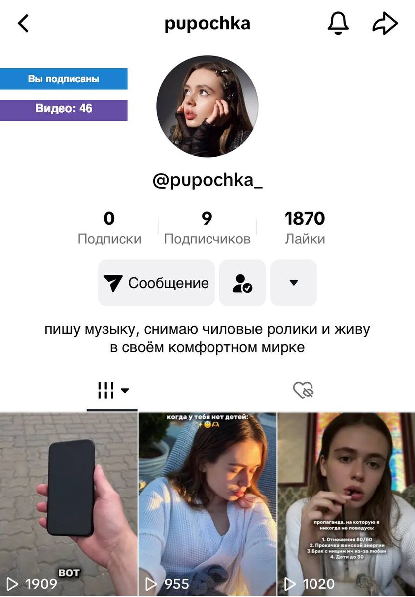 Месяц назад я приняла сложное, но необходимое решение 💔 На мой основной аккаунт в тикток приходило очень очень много жалоб и актив там стал безумно маленький, к сожалению. Целый год я снимала видео каждый день, но ничего так и не поменялось.. Поэтому приняла решение создать новый аккаунт и уже месяц я выставляю туда видео, чтобы продвигать свою музыку! Если вы сидите в тиктоке, то поддержите меня, пожалуйста и подписываетесь на аккаунт “pupochka” 🫶 Там будет эксклюзивный контент! Ссылочка: https://www.tiktok.com/@pupochka_?_t=ZS-8wmSPBGHjfM&_r=1
