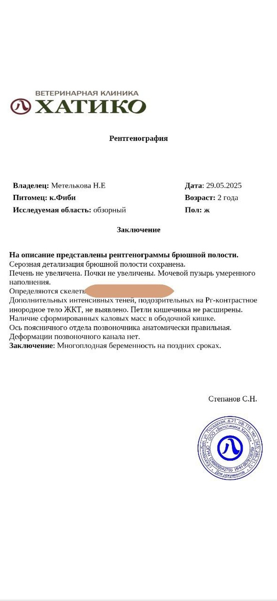 Всем доброго дня и хорошего настроения! Фиби ездила вчера в клинику Хатико к нашей несравненной Буссе. Мы делали контрольное УЗИ и рентген аж в двух проекциях. Приблизительная дата родов у нашей девочки 6 июня получилась. Кунгурова (лучший репродуктолог, которая живёт и принимает в другом городе) сказала, что 3-4. Но котятки уже крупные и в маме буквально безастановочно пляшут, обе ничего не гарантируют. Никаких паталогий нет, развитие плодов отличное. Все в норме, а это самое главное для нас! Также, как известно, узи, даже рентген не дает гарантии - что количество котят укажут точное. Есть только один точный способ узнать сколько котят в матери - кесарево и руки хирурга. Я хотела бы запустить опрос - как вы считаете, сколько котят у Фиби в животике. Прикрепляю рентген в двух проекциях. Давайте вместе попробуем угадать :) Ответ будет точным! Но после родов 😂