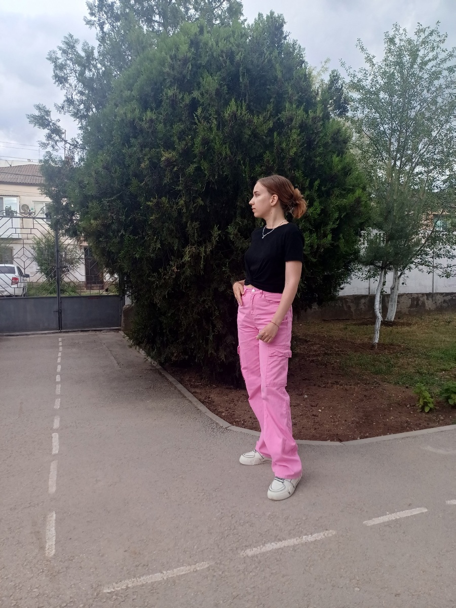 Недавно делилась с вами своими покупками в секонд хенде , одной из таких вещей стали джинсы карго- яркого розового цвета от турецкого бренда Рrimark cares, очень удобные и современные. И вот теперь , когда температура на улице поднялась до 25 градусов мне захотелось надеть что-то более летнее , выйти погулять по городу , а так же устроить небольшую фотосессию. Делюсь с вами фотографиями , которые в итоге у нас получились. Что бы разбавить яркие розовые джинсы -выбрала черную легкую футболку от компании Shein, а также кеды от польского ритейлера одежды и обуви-Reserved.Джинсы сшиты не из стрейчевого материала, так что не сильно растянуться при носке, но при этом они свободны и не сковывают движение.