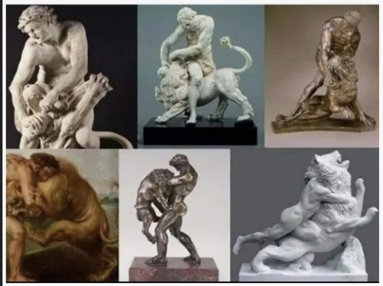 Особая тема в истории искусства - Геракл пытается дать таблетку своему коту 😂😂😂 #юмор
