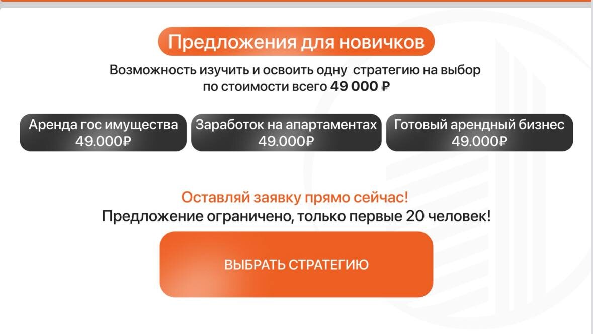 🏠 Специальное предложение! Обучение от Вадима Варенцова: три модуля, три стратегии — выбирайте свою! Если вы давно хотели зарабатывать на недвижимости, но не знали, с чего начать — теперь у вас есть готовое решение. Мы открыли доступ к обучающим модулям от Вадима Варенцова — каждому по ключевой стратегии, которая реально работает в 2025 году. 🔹 Модуль 1. Аренда госимущества Научитесь брать в аренду помещения у города с минимальными вложениями! 💰 Стоимость модуля: 49 000 ₽ 🔹 Модуль 2. Заработок на апартаментах Освойте стратегию реконструкции и сдачи апартаментов с доходностью выше банковских вкладов. Подходит тем, кто готов к росту. 💰 Стоимость модуля: 49 000 ₽ 🔹 Модуль 3. Готовый арендный бизнес (ГАБ) Получите системный подход: как собирать доходные объекты, проверять их на устойчивость и запускать как бизнес. Подходит предпринимателям. 💰 Стоимость модуля: 49 000 ₽ 📌 Вы можете пройти один модуль или выбрать сразу несколько, чтобы выстроить полноценную стратегию. 📞 Хотит