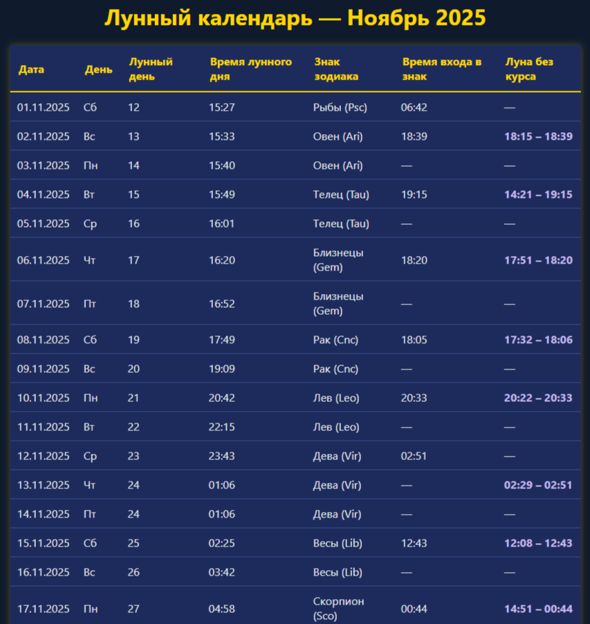 Этот лунный календарь на ноябрь 2025 года создан с учетом ключевых астрологических показателей: