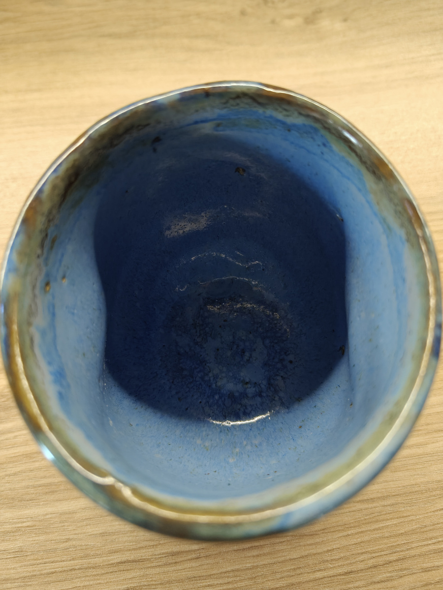 Керамическая чашечка, если её так можно назвать без ручки, чтобы брать ручкой )). Это посуда из категории в уверенной эксплуатации. Пользуюсь лично уже давно, на одном фото даже кофеёк на дне можно увидеть ))). Пью из неё кофе, мне как раз объём по вкусу, где-то 150 мл. Форму чаши подглядела где-то и уж очень она мне зашла. Но... Не просто так название поста так сформулировано. Там скрыта игра слов ). Чашка очень приятная по форме для хватанья, там под пальчики выемка. Туда так приятно ложиться большой пальчик, прям божественное ощущение ))). Это про часть "приятно" из заголовка. Но так как нет ручки, то чашку держать с горячим немного неприятненько )). Скажем так, у кофе с молоком температура стенок уже комфортная, а вот американо или чай уже "больно приятно" пить ))). Чашка сделана из высокотемпературной глины, покрыта эфектарной глазурью. Это такая глазурь, которая после обжига даёт переливы, дополнительные оттенки, блеск и тому подобное ). Окончательный результат до обжига не понят