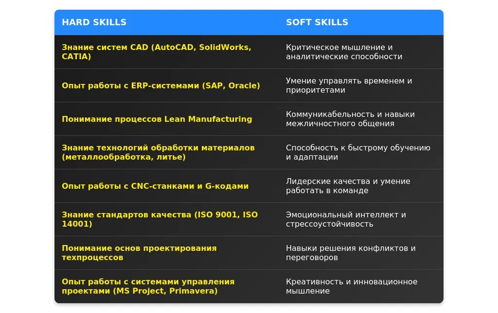 Качества и навыки: Делайте акцент на аналитические способности, умение работать с технической документацией, знание ПО (например, AutoCAD, SolidWorks).