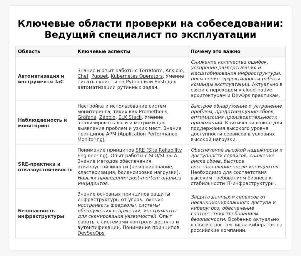 Подготовка к собеседованию на позицию ведущего специалиста по эксплуатации