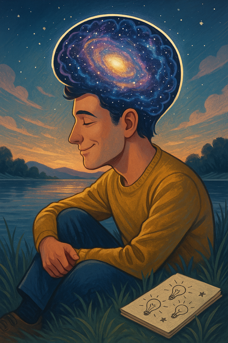 Мозг — величайший инструмент, созданный природой. Он способен на большее, чем мы привыкли думать. Но часто его потенциал дремлет, скрытый за привычками, рутиной и постоянной спешкой. Что, если начать по-настоящему использовать его силу? Вот 50 советов, которые помогут тебе прокачать мозг и раскрыть скрытые способности. Без заумных формул и нудных лекций — только практика, интерес и немного магии нейропластичности. Картинка: человек сидит на берегу, в голове — сияющий космос. Мозг как галактика. Он думает, улыбается, рядом блокнот с идеями. Раскрыть потенциал мозга — это не марафон, а увлекательное путешествие. И оно не требует гениальности с рождения. Всё, что нужно — любопытство, дисциплина и немного смелости быть другим. Ты уже начал. Продолжай. Твой мозг скажет спасибо. Хочешь, я нарисую вторую картинку к этой статье?