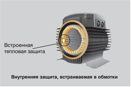 Термозащита электродвигателей — это комплекс мер и устройств, предназначенных для предотвращения перегрева двигателя, который может привести к повреждению изоляции обмоток, снижению КПД, выходу из строя подшипников и даже полному разрушению оборудования. Для чего нужна встроенная защита двигателя, если электродвигатель уже оснащён реле перегрузки и плавкими предохранителями? В некоторых случаях реле перегрузки не регистрирует перегрузку электродвигателя. Например, в ситуациях: Уровень защиты, который может обеспечить внутренняя защита, указывается в стандарте IEC 60034-11. TP — аббревиатура «thermal protection» — тепловая защита. Существуют различные типы тепловой защиты, которые обозначаются кодом TP (TPxxx). Код включает в себя: (1) TP 111 1 — защита от медленной перегрузки; 1 — 1 уровень (отключение); 1 — категория 1 (ограниченная защита).