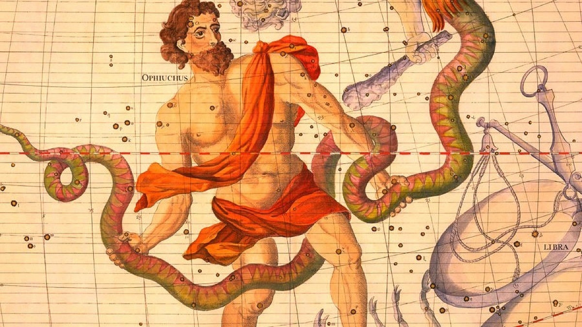 Интересно, что Змея — единственное созвездие, которое состоит из двух частей, разделённых другим созвездием.
