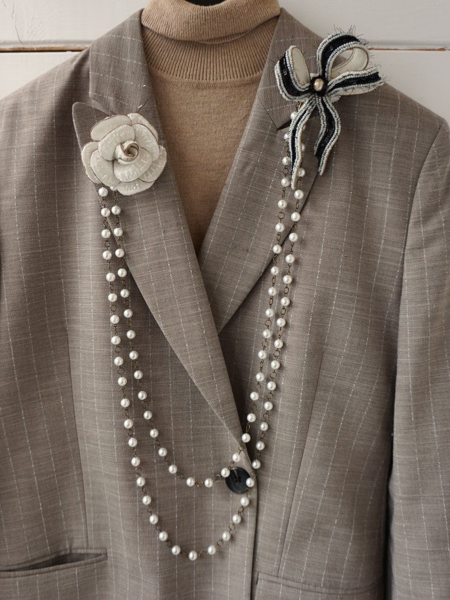 Май подходит к концу и тема месяца в клубе "Пришить можно всё" так же завершена. Вчера вышел заключительный урок по украшению в стиле Коко. Бусы состоят из трех элементов: жемчужных цепочек с красивым замочком, брошей в виде банта и цветка камелии. Сочетание молочного оттенка бархата, кожи и бисера с приглушенным цветом фурнитуры создают эффект винтажного украшения.