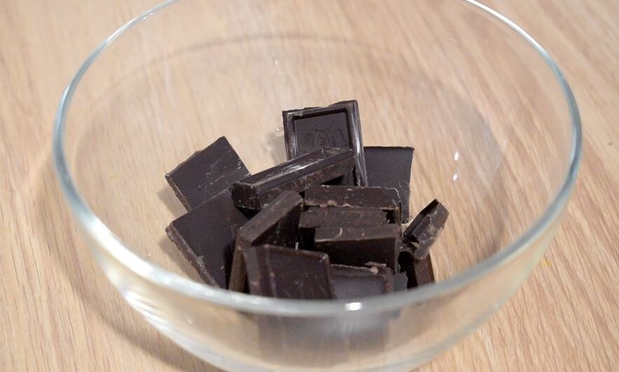 Шоколад ломаем кусочками и кладем его в глубокую емкость.