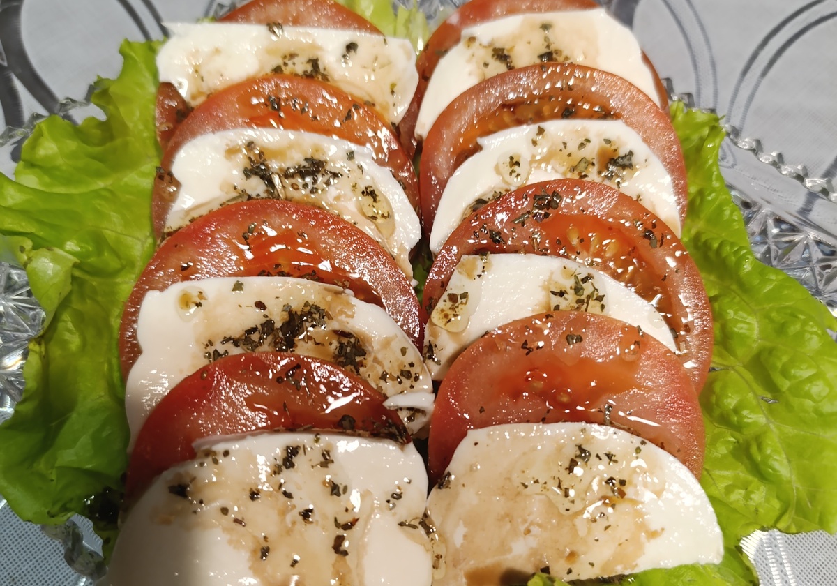 Ингредиенты: помидоры 4 шт моцарелла 1 шарик (125 гр) масло оливковое 2 ст л уксус бальзамический 1 ст л базилик сушеный 0,25 ч л Сыр и томаты нарезаем слайсами. Выкладываем, чередуя помидор и сыр. Смешиваем масло, уксус и базилик. Поливаем этой заправкой сыр и помидоры. Салат готов! Если его готовите в летний период, то можно добавить зеленый листиков базилика вокруг сыра и помидор. Их тоже нужно полить заправкой. Приятного аппетита!!!!!