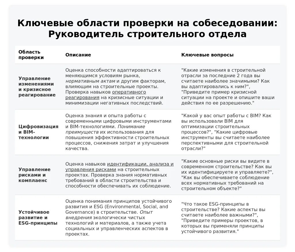 Этапы собеседования на должность руководителя строительного отдела (2025)