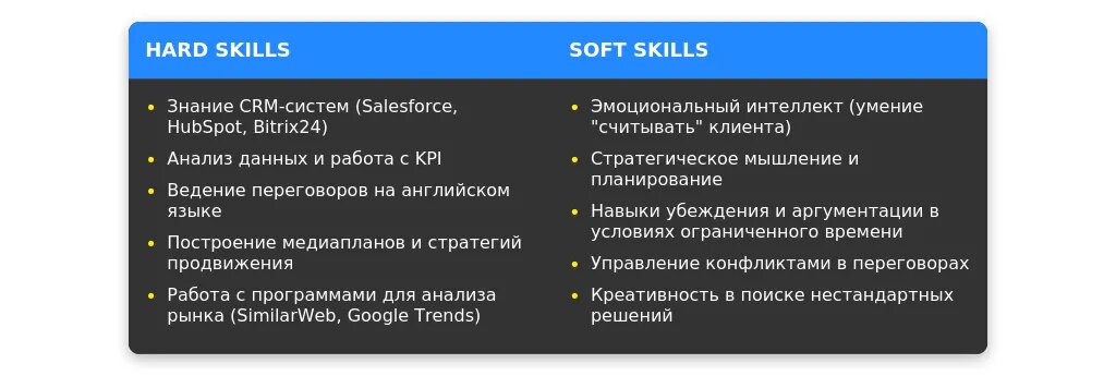 После адаптации: "Google Ads, Facebook Ads, CRM-системы, ведение переговоров, работа с международными клиентами."