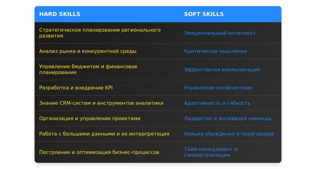 Анализ требований вакансии для профессии "руководитель регионального развития"