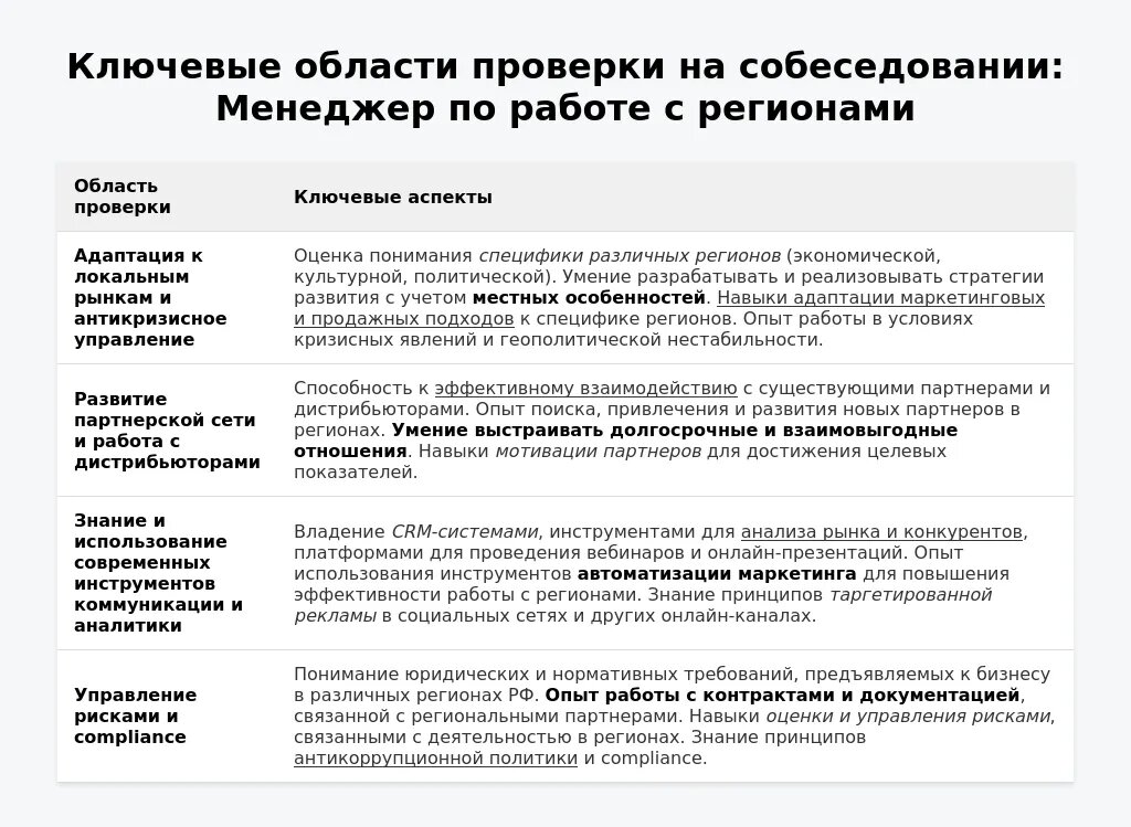 Ваша задача – убедительно рассказать о своем опыте, демонстрируя ключевые soft skills, необходимые для успешной работы менеджером по работе с регионами.