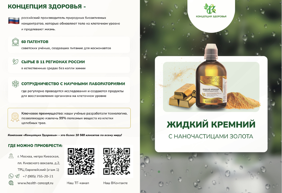 Жидкий кремний – один из основных элементов, участвующих в обмене веществ, который также способствует усвоению магния и других жизненно важных микро- и макроэлементов и витаминов.