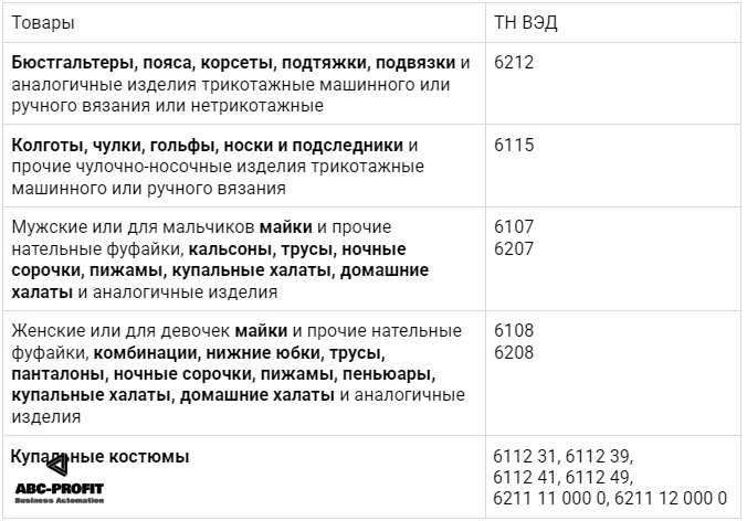 Общие сроки маркировки нижнего белья, халатов и купальников