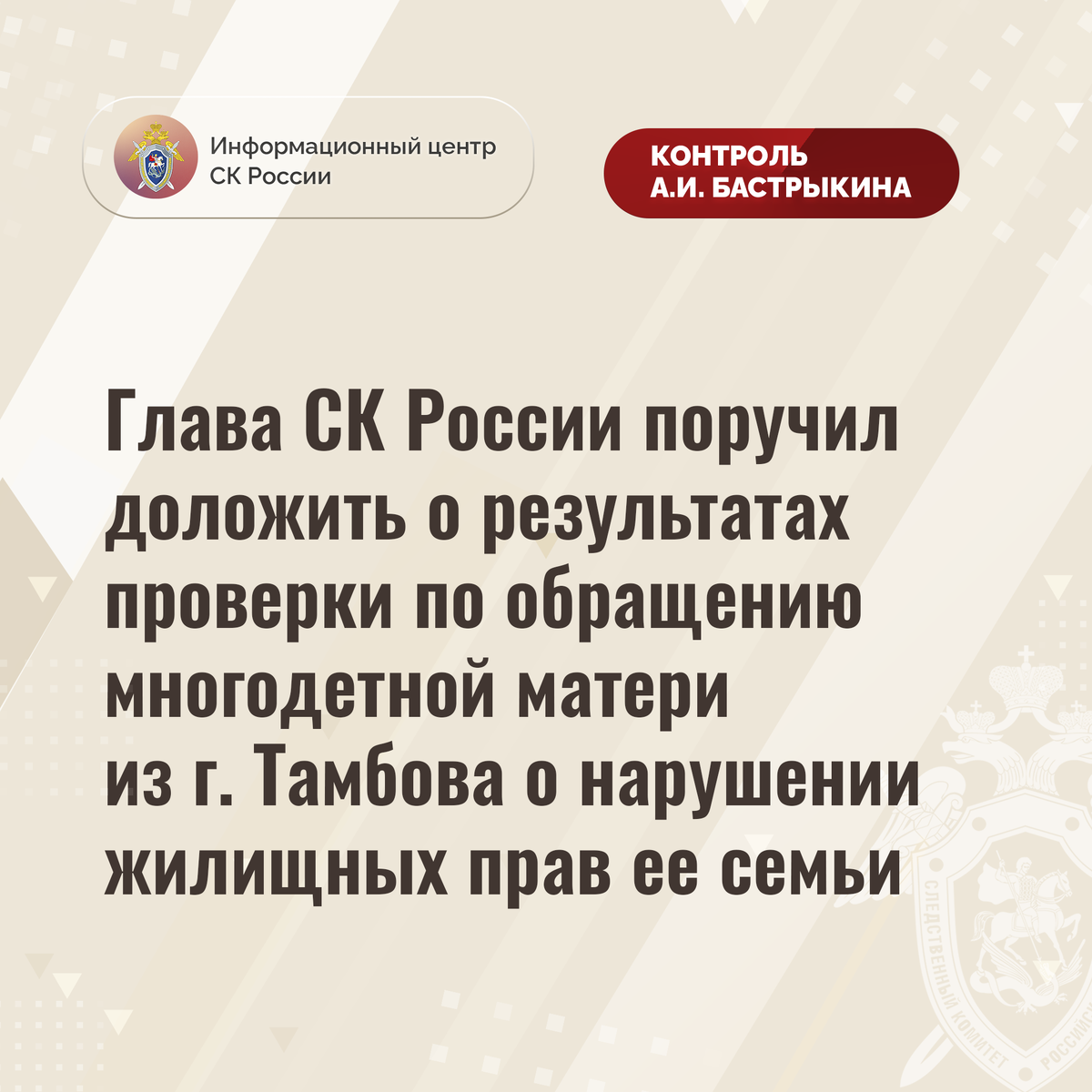 Глава СК России поручил доложить о результатах проверки по обращению многодетной матери из г. Тамбова о нарушении жилищных прав ее семьи