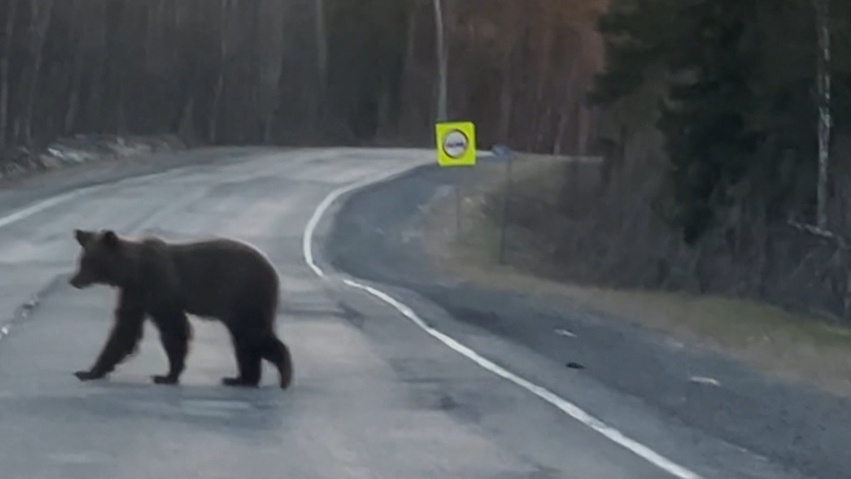 «Первая встреча была не то что неожиданной, это был просто шок, потому что медведь резко выскочил. Я двигался с достаточной скоростью. Медведь выскочил с обочины, и я еле успел остановиться. То есть реакция сработала на торможение, и поэтому, наверное, чудом избежал аварии, потому что буквально в метре пробежал от меня. Успели рассмотреть даже его гладкую шерсть», — рассказал очевидец Евгений Кузнецов.