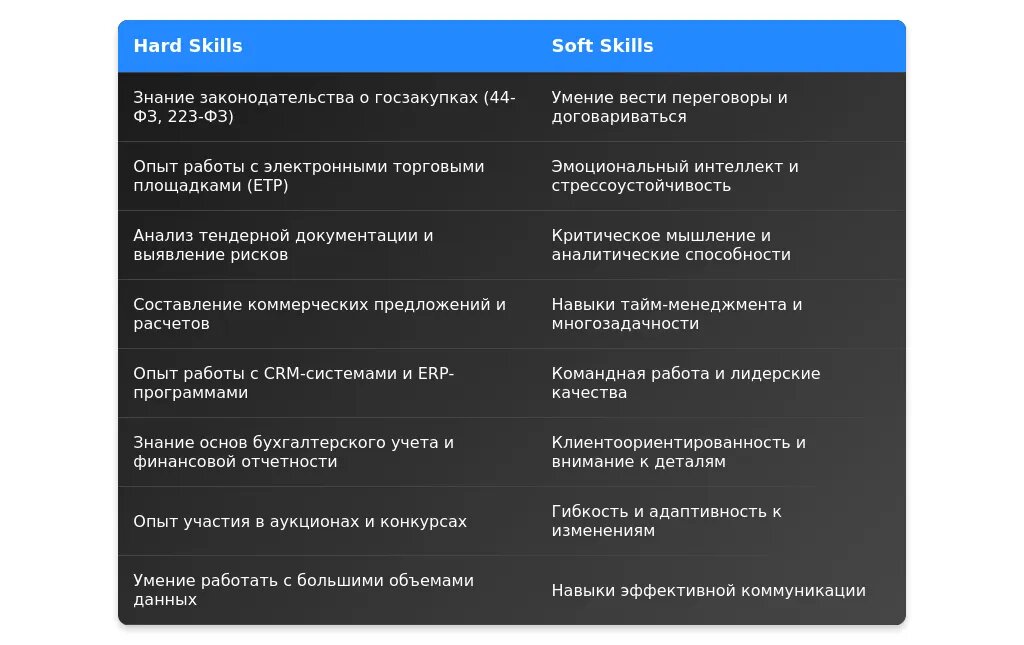 - Список актуальных навыков для менеджера по тендерам и как их указать.