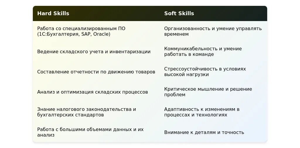 Анализ вакансии для бухгалтера склада