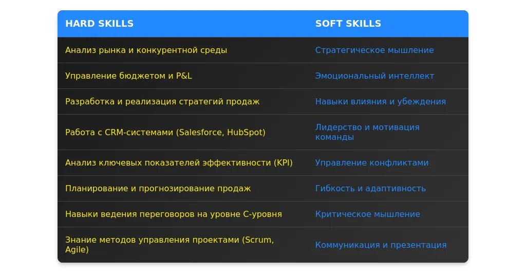 После адаптации: "Управление региональными командами, знание CRM-систем, стратегическое планирование продаж."