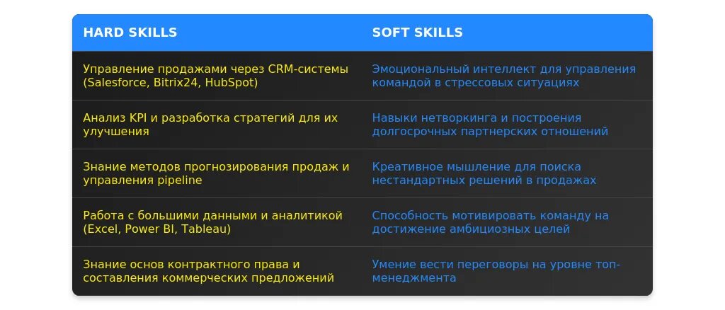 Технические навыки для начальника сектора продаж